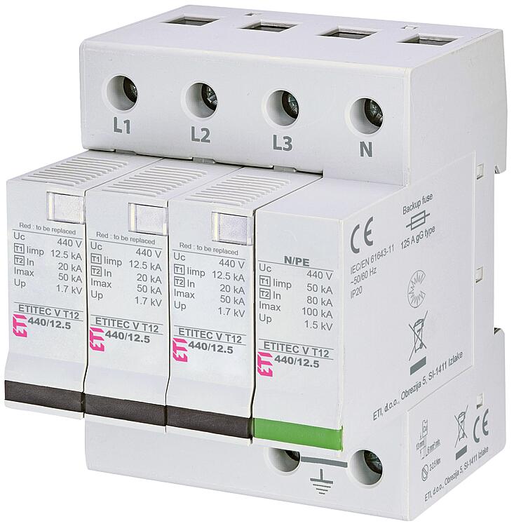 ETI Parafoudre ETITEC V T12 440/12,5 4+0 RC, REGN° de commande : 62 147 84 ![]()