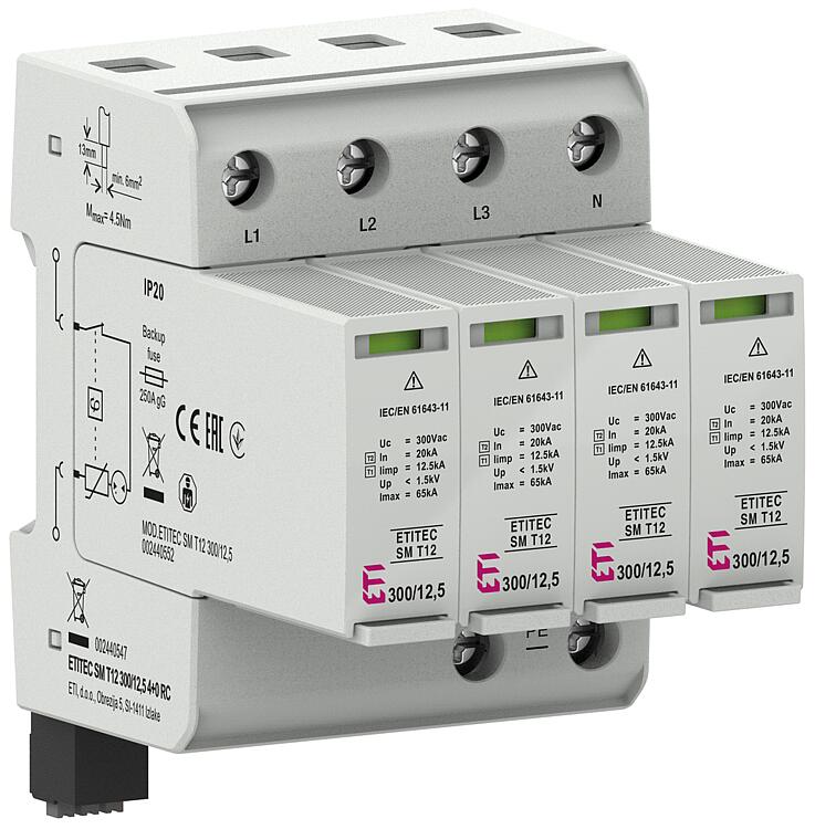 Parafoudre combiné ETI ETITEC SM T12 300/12,5 4+0 RC, AMDN° de commande : 62 147 89 ![]()