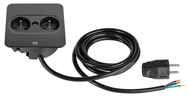 Bachmann TWIST 2 prise de table, 2x UTE, noir mat, carrée, FranceN° de commande : 62 153 05 ![]()