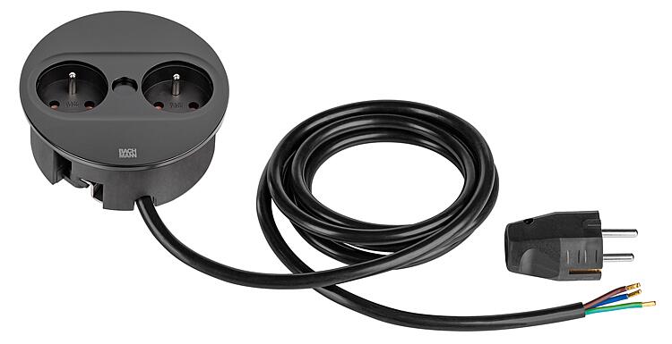 Bachmann TWIST 2 prise de table, 2x UTE, noir mat, ronde, FranceN° de commande : 62 153 04 ![]()