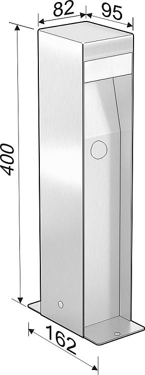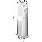 Description • Pour l'extérieur • Type de protection: IP 44 • Protégé contre les projections d'eau • Tension: 230 V/16 A • Puissance: 2500 W • Pour installation permanente • Passages de câble pour conducteur de terre jusqu'à 2,5 mm² • LED 1,8 W • Grande zone de raccordement accessible par le bas • Prises avec contact de sécurité et couvercle rabattable • Partie enterrée assortie réf. art. : 62 001 69 • Angle de détection : 160° • Portée max. 3 m Caractéristiques techniques