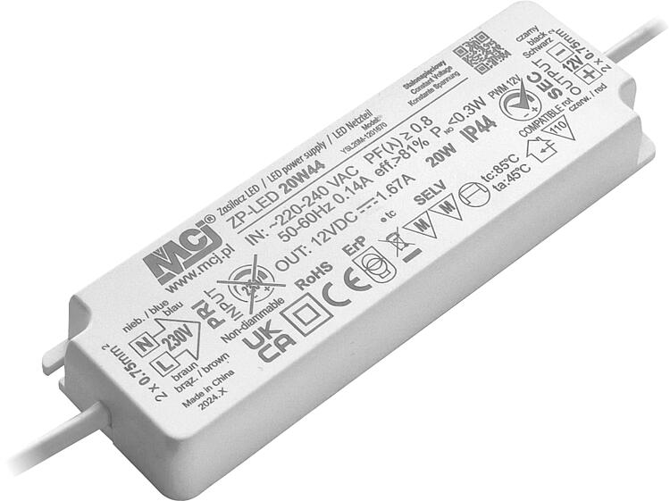 Transformateur pour sources lumineuses 12V DC, 20Watt, IP44N° de commande : 62 170 43 ![]()