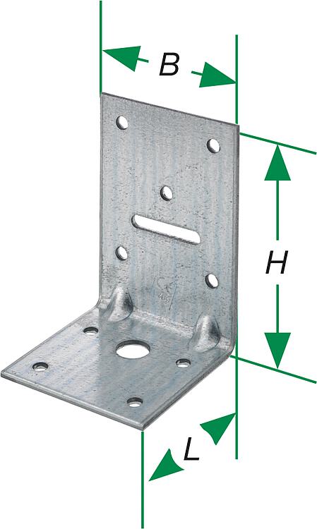 Description • largeur : 60 mm • hauteur : 90 mm • longueur : 60 mm • épaisseur : 2,5 mm • 9 x petit trou rond : ø 5 mm • 1 x trou oblong : 5 x 30 mm • Utilisation universelle, par ex. de poteaux sur dalles en béton, de poutres en acier et de traverses en bois, de chevrons sur fermes • Éléments de construction réajustables sur la construction grâce au trou oblong • Domaine d'application : bois contre bois, bois contre béton • Application : Sur des dalles en béton, des poutres en acierm et des traverses en bois • Galvanisé à chaud : Pour les applications intérieures et extérieures sans exposition directe aux intempéries, ne remplace pas l'inox. Caractéristiques techniques