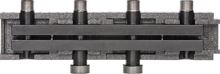 Description • Départ et retour séparés thermiquement donc adapté aux installations de chauffage à condensation • Construction compacte • Sorties circuit de chauffe disposées parallèlement • Départ et retour marqués en couleur • Testé en usine et avec couche de fond • Isolation et fixation murale inclus Données techniques : • Pression de service max. : 6 bar • Température de service max. : 110°C • Matériau collecteur : acier • Matériau isolation : EPP • Profondeur : 110 mm • Débit max. : 3 m³/h • Puissance max. : 70 kW • Entraxe : 125 mm • Raccord chaudière : 2 x DN 40 (1 1/2“) mâle • Distance du mur : 110/150 mm • Épaisseur isolation : 25 mm Version mâle • Raccord circuit de chauffe : DN 25 (1") mâle Caractéristiques techniques