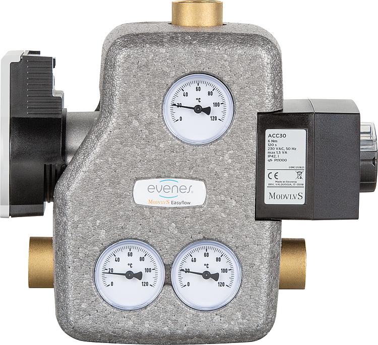 Description Unité complètement prémontée pour un maintien de la température retour dans le dispositif de chaudière à combustible. Le maintien constant de la température s´effectue électroniquement par le servomoteur • Marche anti-thermosiphon lors de panne de courant ou panne du circulateur • Clapet anti-thermosiphon intégré, peut ête débranché de l´extérieur • Possibilité de montage gauche ou droite • Blocable, circulateur, thermomètre et isolation thermique inclus • Circulateur Wilo Para STG/8 Données techniques : • Corps : laiton • Isolation: EPP • Température de service max.: 100°C • Pression de service max.: 6 bar • Utilisable jusqu´à 80 KW (à ∆t 30k) • Servomoteur à valeur fixe 3 points ACD 10 • Plage de réglage 0-90°C librement réglable Chercher dans le catalogue