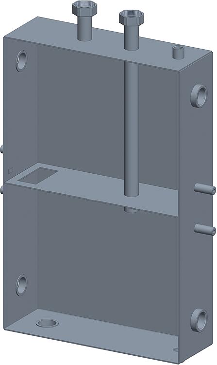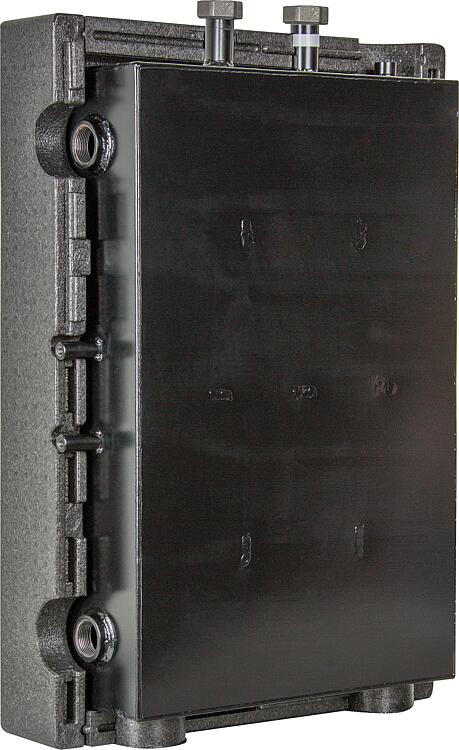 Description • Mini-réservoir tampon de chauffage compact pour le Chauffage et le Refroidissement. • Utilisable comme réservoir tampon de chauffage ou comme Découpleurs hydrauliques • Idéal pour l'utilisation dans les installations de pompes à chaleur pour augmenter le débit d'eau • Utilisable dans des installations hybrides avec différentes sources d'énergie • Conçu pour le montage mural • Manchon DN 40 (1 1/2") pour recevoir une résistance électrique jusqu'à 3 Eau froide • Raccord pour purgeur d'air, vidange ou douille de sonde DN 15 (1/2") • Montage horizontal et vertical possible • Support mural et isolation thermique inclus Données techniques : • Contenu : 50 L • Matériau : acier S325, revêtement extérieur par poudre • Isolation thermique : EPP noir, 40 mm • Plage de température de fonctionnement : 5 °C à 110 °C • Pression de service : max. 3 bar • Débit : max. 4,5 m³ • Dimensions (H x L x P) : 805 x 550 x 245 mm • Raccord femelle : DN 32 (1 1/4") Femelle • Utilisation comme réservoir tampon de séparation ou en série, Découpleurs hydrauliques ou unité hybride. • Avec raccordement pour un Module hydraulique ou un Distributeur • Entraxe du consommateur de chaleur : 125 mm |