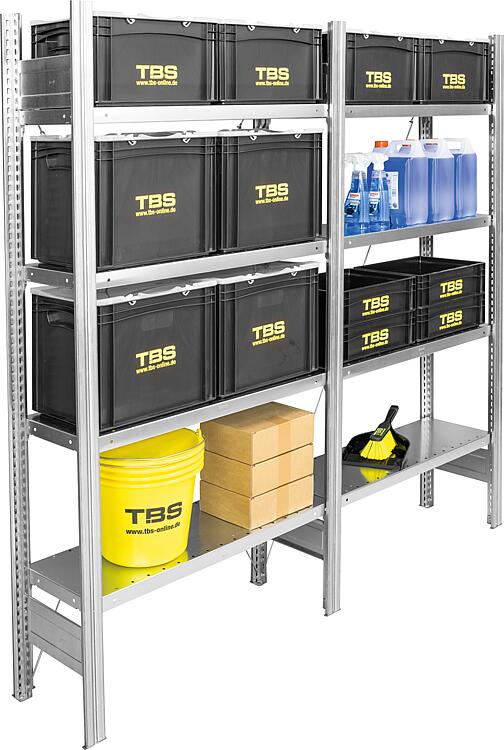 Description • Sécurité certifiée GS • Conforme aux normes selon BGR 234 et DIN EN 15635 • Si la hauteur des étagères est plus de quatre fois supérieure à la profondeur des étagères, celles-ci doivent être protégées contre le basculement, par exemple par une fixation murale ou des ancrages au sol. • Profilé de support : - Perforation trapézoïdale au pas de 25 mm. • Tablette en acier : - Triple pliage avec bord tubulaire de 40 mm • Surface galvanisée • Avec support de tablette enfichable • Dimensions extérieures largeur : rayonnage de base + 56 mm • Dimensions extérieures profondeur : rayonnage de base + 26 mm • Livré démonté • Emboîtable, Cadres pré-montés • Toutes les Étagères sont livrées sans contenu ! • Charge par tablette 150 kg • Charge admissible par travée 2000 kg • hauteur : 1800 mm Montage simple par emboîtement. • Le rayonnage de base peut être prolongé par un élement suivant Délai de livraison env. 15-20 jours ouvrés Caractéristiques techniques