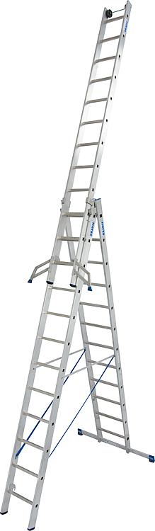 Marchandise à commander Description • Matériau : aluminium • Utilisable comme échelle d'appui, échelle coulissante, échelle double, avec partie d'échelle pouvant être retirée individuellement • Montants en profilé d'aluminium pressé avec renforcement des arêtes • Profilés de guidage en aluminium stables entourant les montants pour une grande stabilité • Embouts de pied antidérapants • Echelons profilés sur tout le pourtour, profondeur des échelons 30 mm • Levier de blocage à enclenchement automatique pour un transport sûr • Galets de roulement muraux à partir de la version 3 x 12 échelons • Grande stabilité grâce à des sécurités de traction-compression intégrées • Avec traverse (880 mm) • À partir de 2 x 12 échelons avec traverse trigone dans la partie coulissante, ce qui permet d'utiliser les parties de l'échelle séparément • Dimensions de transport (L x l x H) : - 3 x 8 échelons : env. 2450 x 500 x 200 mm - 3 x 9 échelons : env. 2700 x 500 x 200 mm - 3 x 10 échelons : env. 3000 x 500 x 200 mm - 3 x 12 échelons : env. 3550 x 500 x 200 mm - 3 x 14 échelons : env. 4100 x 500 x 200 mm Vers la famille de produits Des questions sur cet article ?Connectez-vous d'abord Ajouter à une listeConnectez-vous d'abord |
