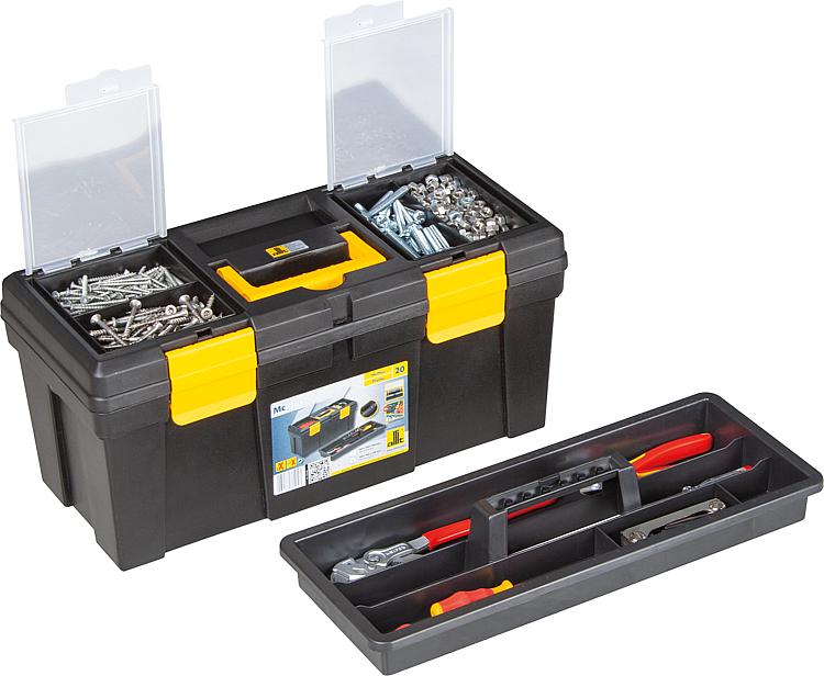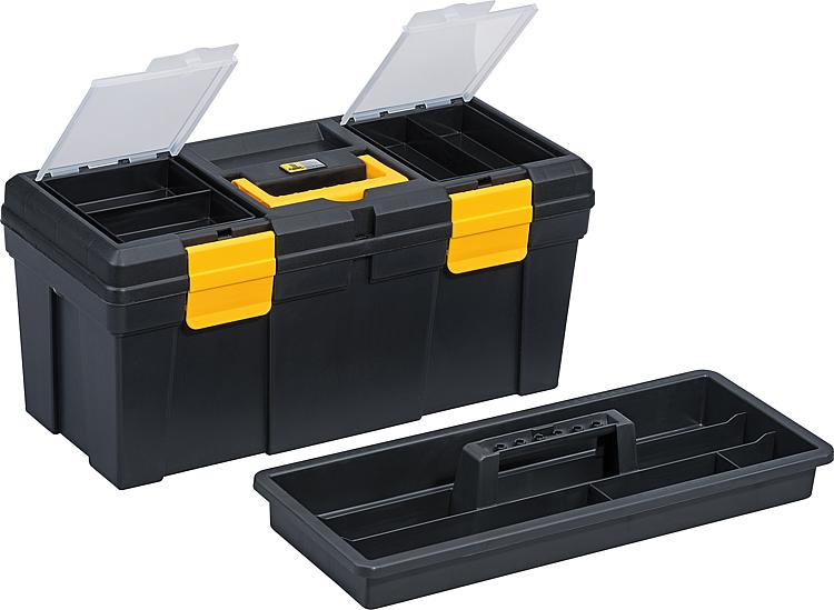 Description • Matériau : Plastique PP • Casiers pour petites pièces dans le couvercle • Insert de transport amovible avec porte-embouts et graduations • Dimensions : 510 x 240 x 240 mm • Livré vide Caractéristiques techniques