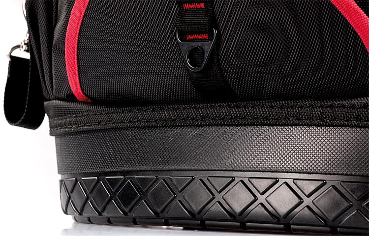 Description • Matériau : nylon • Sangles de transport rembourrées • 2 poignées de transport et porte-clés • Compartiment rembourré pour ordinateur portable/tablette jusqu'à 14 • 3 compartiments de rangement à l'intérieur pour les petits objets • 1 support de mètre ruban en métal • 15 pochettes à l'intérieur • 6 passants en caoutchouc à l'intérieur • 1 pochette extérieure verrouillable • 3 pochettes extérieures • 2 boucles de fixation à l'extérieur • 4 anneaux de fixation métalliques à l'avant • couleur : noir/rouge • Extérieur (L x H x P)(mm) : 360 x 440 x 170 • Poids (kg) : 2,16 • Livré sans contenu Caractéristiques techniques