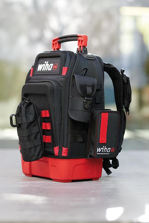 Description • Sécurité testée VDE 1000 V • Équipement individuel des outils grâce à 77 possibilités de rangement et 30 possibilités de fixation • Coque inférieure résistante à l'eau, solide et stable • Grand compartiment dorsal séparé pour documents et ordinateur portable • Dimensions extérieures (L x H x P) (mm) : 385 x 530 x 260 • Poids (kg) : 5,8 Composé de : • Tournevis VDE à fente-Slim : 3,5/4,0/5,5 • Tournevis VDE Phillips-Slim : PH1/PH2 • Tournevis VDE PlusMinus/Pozidriv-Slim : SL/PZ2, 218 mm • VDE Porte-embouts à magasin PocketMax® pour slimBits • VDE embout slimBit à fente : 3,5, 75 mm • VDE Phillips-slimBit : PH1/PH2, 75 mm • VDE PlusMinus/Pozidriv-slimBit : SL/PZ2, 75 mm • Jeu de tournevis coudés à ouverture hexagonale avec tête sphérique : SW 1,5/2,0/2,5/3,0/4,0/5,0/6,0/8,0/10,0 • VDE Pinces à bec plat, longueur (mm) : 200 • Pinces universelles VDE, longueur (mm) : 180 • Pince coupante diagonale VDE, longueur (mm) : 160 • Dénudeur pour câbles ronds : - ø du câble (mm) : 8-13 - Section des Échelles (mm²) : 0,5-6,0 • Mètres pliants, longueur (m) : 2 • Niveaux à bulles d'électricien Longueur (mm) : 400 Caractéristiques techniques