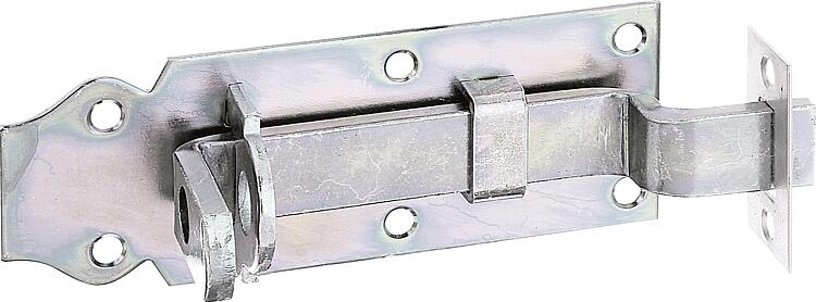 Verrou à coulisse avec poignée plate, coudé, avec tirant en tôle fixe