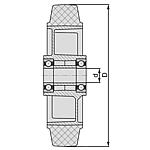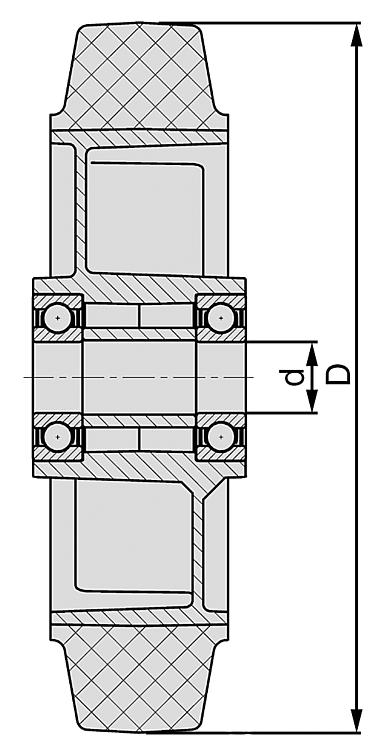 Description • Pneus: plein caoutchouc d'élastiques, qualité de course légère, couleur noir, 65° les rivages A, une relation insoluble, faible résistance au roulement • Corps de roues d'une coulée sous pression d'aluminium, Résistant à la corrosion, avec des roulements à billes • Roues de remplacement pour 63 003 79 – 63 003 90 Caractéristiques techniques