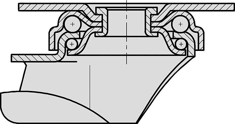 Description • Boîtier: en acier embouti, axe de roue vissée, galvanisé, bleu passiviert, passivé bleu, sans chrome • Roues Semelle de roulement en caoutchouc thermoplastique, couleur gris, sans profil 85° shore A, Corps de roue en polypropylène • Sorte de roulement : palier à glissement • Logement roues de guidage avec double roulement dans la couronne pivotante Caractéristiques techniques