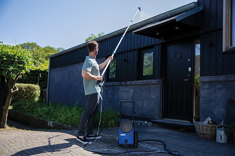Description • Extensible jusqu'à 3,90 m • Raccord à connexion rapide • Tête de lance rotative • Système de nettoyage intégré • Livré avec : - Bandoulière - 2 x gicleurs - Tuyau de détergent 2,5 m - Bouteille de détergent 0,5 l Caractéristiques techniques