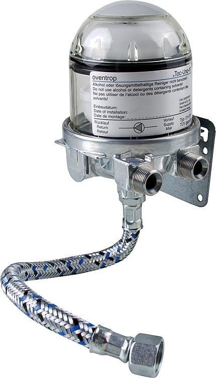 Description • Pour une purge automatique d'une installation de chauffage fioul dans une ligne avec retour • Support et flexible inclus (300 mm) • Le montage se fait entre le filtre fioul et le brûleur • Débit gicleur max : 110 l/h fioul domestique • Débit retour max. : 120 l/h fioul domestique • DN 8 (1/4") femelle x DN 10 (3/8") mâle Caractéristiques techniques