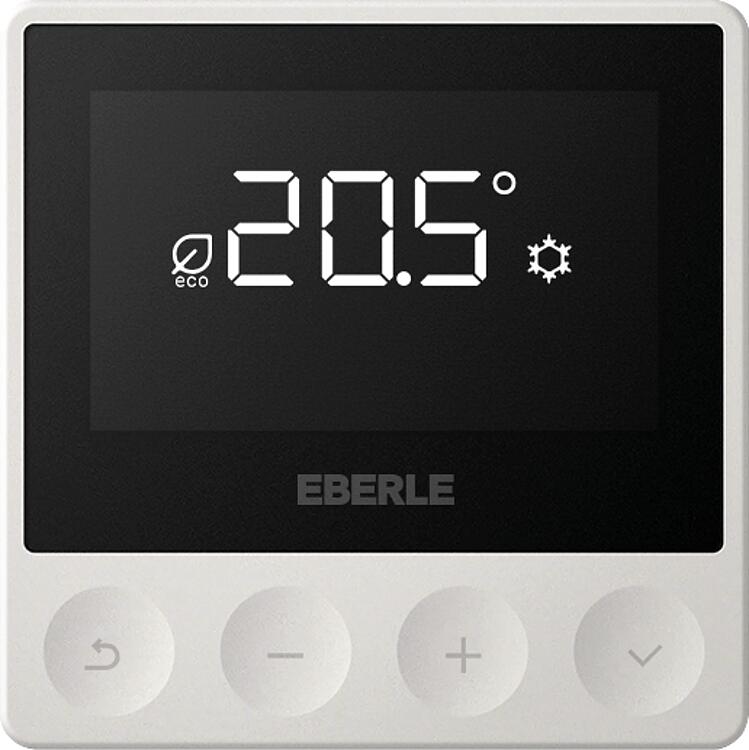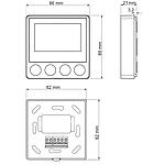Description • Régulateur d'ambiance numérique en saillie avec une très faible hauteur de montage de seulement 21 mm, pour fixation murale. • Avec sortie triac, adapté aux systèmes de chauffage à eau • Très grand écran noir avec rétroéclairage • Affichage de texte pour une utilisation auto-explicative • Alimentation : 230V AC • Courant de commutation : sortie triac (max. 2A) • Plage de mesure : 5-30°C pièce • Convient pour Chauffer /Chauffer, abaissement ou présence au choix • Minuterie courte durée (mode Eco/Party) pour modifier la température heure par heure • Méthode de régulation PWM ou 2 points • Détection fenêtre ouverte réglable par menu • Nombre d'Actionneurs commutables : 6 • Dimensions (H x L x P) : 86 x 86 x 21 mm • Indice de protection : IP30 • Couleur du boîtier : blanc actif brillant, similaire à RAL 9016 Caractéristiques techniques