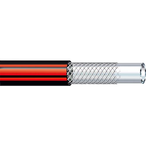 Description • Domaines d´application : utilisation fréquente, sollicitation élevée, agriculture, construction, pépinière • Sans plastifiants ni métaux lourds (sans polluants) • Matériau : PVC souple et PVC avec renfort textile haute résistance • Tuyau flexible professionnel avec tissage croisé • Robuste et résistant à l'abrasion • Structure : surface lisse • Plage de température : -15°C à +65°C • Pression d'éclatement : DN 15 (1/2") = 36 bar, DN 20 (3/4") = 24 bar, DN 25 (1") = 24 bar • Résistance aux UV Caractéristiques techniques