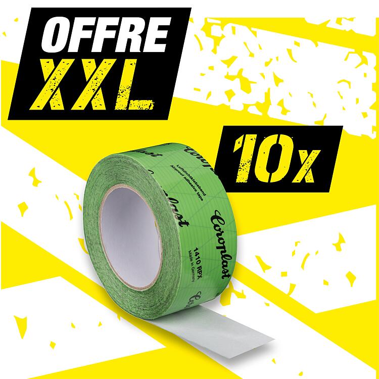 Description • Pour la réalisation de la couche d'étanchéité à l'air selon GEG et DIN 4108-7 • Pour le collage étanche à l'air de films pare-vapeur et freine-vapeur en non-tissé, PP ou PE • Résistance extrême à l'humidité • Collage sûr sur tous les supports lisses à légèrement rugueux • Mise en œuvre possible à partir de -10 °C • Dimensions (L x l x D) : 25 m x 60 mm x 0,27 mm |