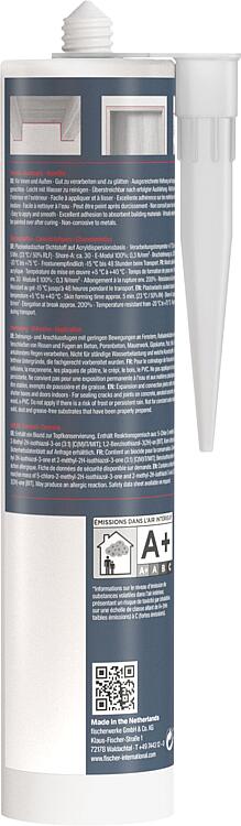 Description • Plasto-élastique • Pour les fissures dans les murs à l'intérieur ou à l'extérieur • Sur la base de dispersion acrylique (à base d'eau) • Durcissement de la vapeur d'eau : • Peut être peint • Résistant au vieillissement • 10 % max. de déformation totale autorisée : • Les joints autour des portes et fenêtres (de préférence à l'intérieur du bâtiment) • Résistance à la température : de -20 °C à +80 °C • Durée de stockage : 12 mois • Contenu : 310 ml • Paquet = 12 pièces Caractéristiques techniques