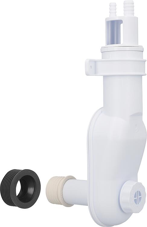 Siphon de raccordement à l'égout à faible encombrement avec bec libre![]()