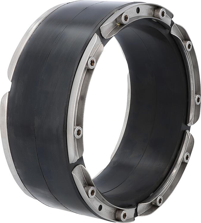 Description • Insert d'étanchéité en acier inoxydable et caoutchouc EPDM • ø de carottage : 250 mm • Avec 5 anneaux à clipser en acier inoxydable Caractéristiques techniques