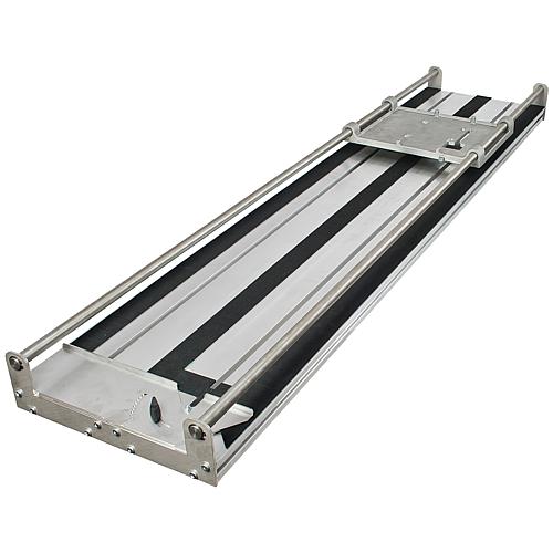 Description • Combinaison d´aluminium et d´acier inox • Insertion de la scie sans outils • Support anti-dérapant • Butée latérale réglable pour les coupes en série et en onglet jusqu´à 45° • Poids (kg): 14,5 Caractéristiques techniques
