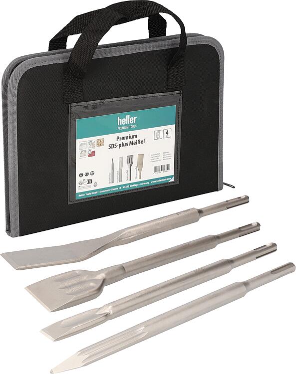 Meißel-Set heller® ENDURO selbstschärfend SDS-Plus, 4-teilig Spitz-/Flach-/Spat- und Fliesenmeißel![]()