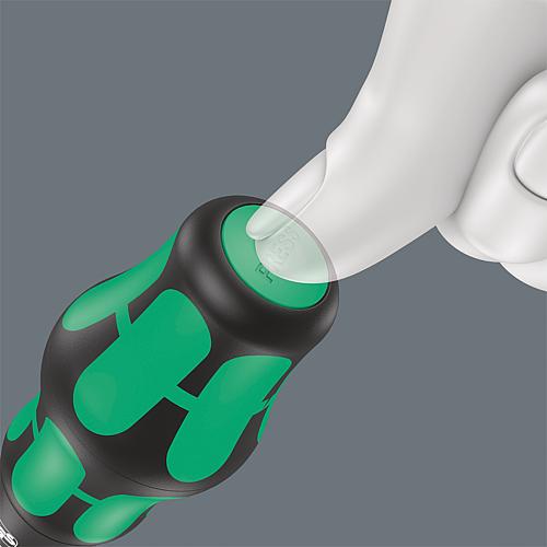 Description Kraftform Turbo - Quadruple la vitesse de vissage purement mécanique par simple pression sur un bouton L´engrenage permet de visser à un couple élevé et de réaliser le réglage de précision Porte-embouts Turbo 1/4" avec mandrin à serrage rapide Rapidaptor, longueur (mm) : 146 - SL, longueur (mm) : 4,0 x 0,8/5,5 x 1,0/6,5 x 1,2, 89 - PH, longueur (mm) : PH1/PH2/PH3, 89 - Torx®, longueur (mm) : T10/T15/T20/T25/T30, 89 - Six pans creux, longueur (mm) : 3/32"/ 1/8"/ 5/32"/ 3/16", 89 - Carré intérieur, longueur (mm) : #1/#2/#3, 89 - Fonction turbo activable : quadruple la vitesse de vissage - entièrement mécanique - par simple pression sur un bouton - Couple maximal de 14 Nm lorsque la fonction turbo est désactivée - Pochette textile incluse Caractéristiques techniques