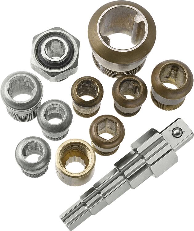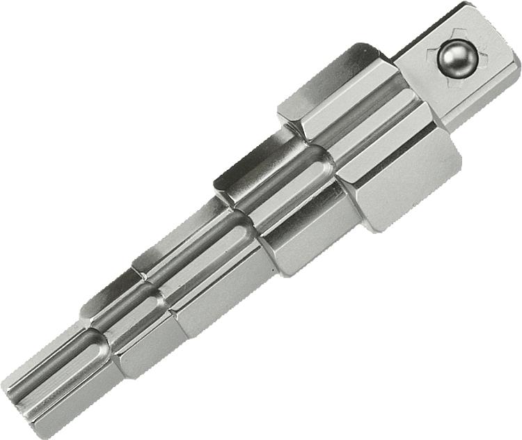 Description • En acier en chrome vanadium, durci, nickelé • Clé combi pour le montage et le démontage de raccords de radiateurs, vissages de retour et petites rallonges de robinet • Forme d´escalier • Quatre pans 12,7 mm (1/2“) • Clé à crans UNI, avec six pans creux et verrouillage 12 pans 9,5 - 25,4 mm (3/8“ - 1“) Chercher dans le catalogue