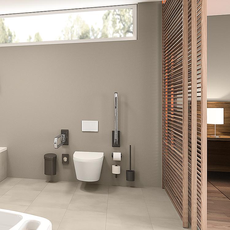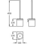 Description • Matériau : aluminium • Surface : revêtement par poudre • Couleur : anthracite métallisé • Suspendu • Dimensions (l x H x P): 110 x 450 x 130 mm • Porte-balai amovible pour l'entretien • Avec une cavité supplémentaire pour désinfectant • Tête de brosse interchangeable, coloris noir • Livraison avec vix inox Torx ø 5 x 60 mm et chevilles pour matériaux de construction pleins • Brosse de rechange WC 93 780 58 • Tête de brosse de rechange WC :93 780 59 Caractéristiques techniques