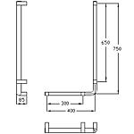 Description • Matériau : aluminium • Surface : revêtement par poudre • Couleur : anthracite métallisé • Charge max.: 100 kg • Fixations cachées • Livrée avec vis inox TORX Ø 6 x 70 mm et chevilles pour matériaux de construction pleins • Peut être équipée d´un porte-rouleau N° de commande : 93 780 91 Caractéristiques techniques