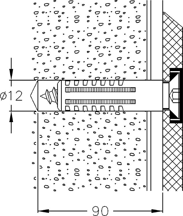 Description • Convient pour série cavere® • Pour la fixation de barres d’appui rabattables ou fixes, ou de sièges de douche rabattables, sur murs en brique creuse ou pleine • Béton ≥ B15, brique pleine ≥ Mz 12, brique silico-calcaire pleine ≥ KS 12, pierre naturelle avec une structure solide • Livraison se composant de 4 chevilles SX 12 x 60 mm, 4 vis pour panneaux de particules 10 x 90 mm (Torx T40) en inox classe A2 • Compatible avec la série Cavere Caractéristiques techniques