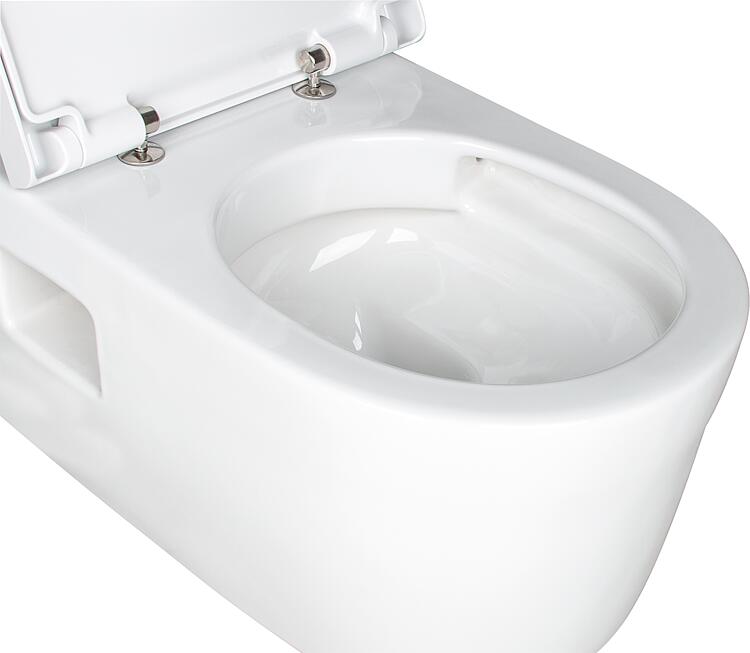 Description Se compose de : • 1x WC suspendu à fond creux EluPura Original S, sans bord de chasse (AquaChannel Flush) - Matériau : Céramique - Couleur : blanc - suspendu au mur - dimensions (l x h x p) : 365 x 570 x 540 mm - poids : 31 kg - volume de rinçage : 4,5 l - Fixation incluse • 1x Abattant WC EluPura Original S - Matériau abattants/couvercle : Duroplast - Couleur : blanc - Matériau de la charnière : acier inoxydable • kit d'insonorisation inclus Caractéristiques techniques