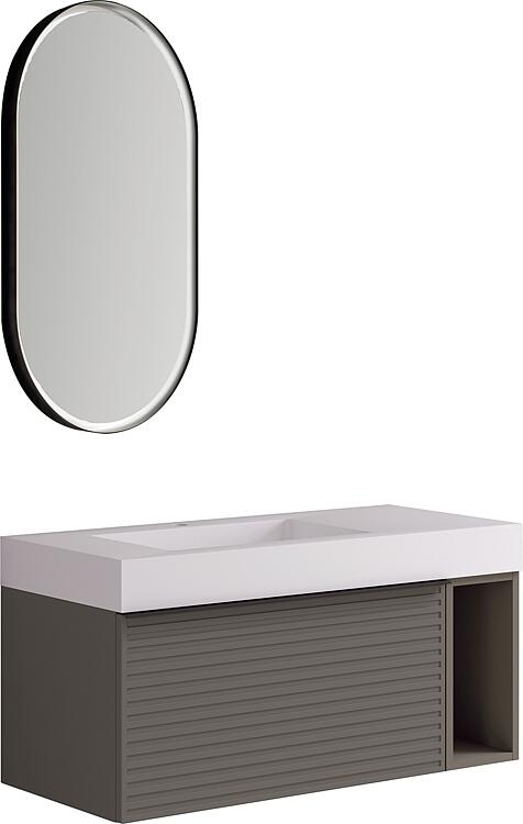 Kit de meubles de salle de bain Blies Carbon Grau avec miroir LED, étagère ouverte et vasqueN° de commande : 93 247 04 ![]()