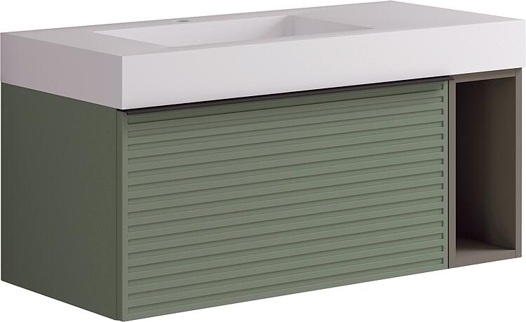 | Kit de meubles de salle de bains Blies vert sauge avec miroir LED, étagère ouverte et vasqueN° de commande : 93 247 03