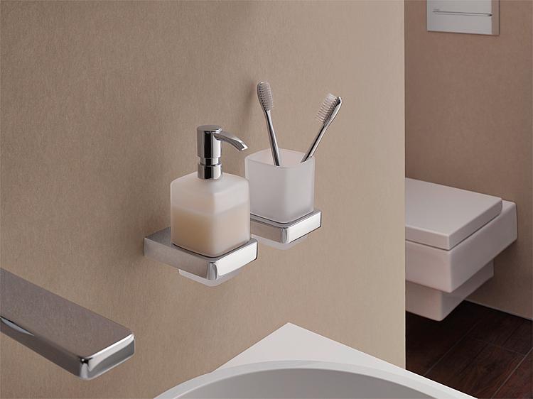 Description • Matériau - récipient : verre cristal - Support mural : Zinc moulé sous pression galvanisé • Surface - Récipient : satiné - Support mural : chromé • Suspendu au mur • Contenance : 250 ml • Dimensions (L x H x P) : 81 x 159 x 100 mm • Vis incluses Caractéristiques techniques
