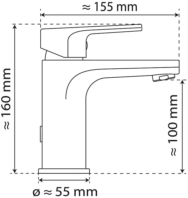 Description • Matériau : laiton • Commande : Mitigeur monocommande • hauteur : 160 mm • Hauteur d'écoulement : 100 mm • Saillie : 155 mm • Débit à 3 bar : 6,0 l/min • Y compris garniture d'écoulement à cliquet et tringlerie de traction pour systèmes Clou, avec trou pour barre à tirette Caractéristiques techniques