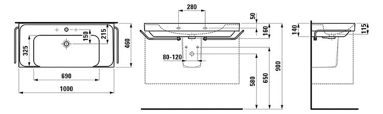 Vasque Laufen Meda, 1000x160x460mm, 1 trou pour robinet, avec trop-plein, blancN° de commande : 93 272 38 ![]()