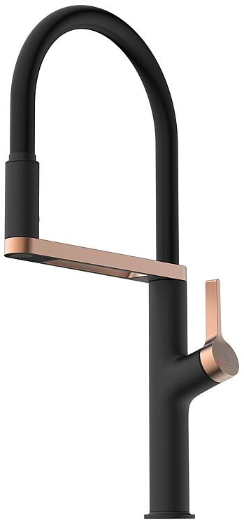 Description • Matériau : laiton • Commande : Mitigeur monocommande • Bec orientable : 360°, noir • Hauteur : 495 mm • Hauteur du bec : 235 mm • Saillie : 210 mm • Débit à 3 bar : 6,1 l/min • Avec fonction Cool Start (lorsque la poignée est à la verticale) Caractéristiques techniques
