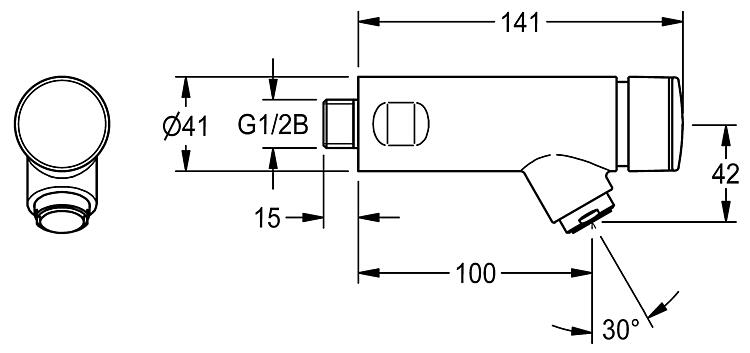 Description • Matériau : laiton • Surface : chromé • Saillie : 100 mm • Pression d'écoulement minimale : 1 bar • Temps d'écoulement réglable en continu • Débit à 3 bar : 6 l/min • Pour eau froide Caractéristiques techniques