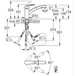 Mitigeur d'évier Grohe Eurosmart ND avec douchette extractible Saillie [mm] chromeN° de commande : 93 275 08 ![]()