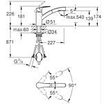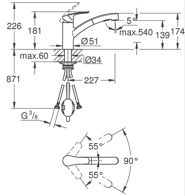 Mitigeur d'évier Grohe Eurosmart avec douchette extractible pour montage sous fenêtre, saillie 227 mm chroméN° de commande : 93 275 09 ![]()