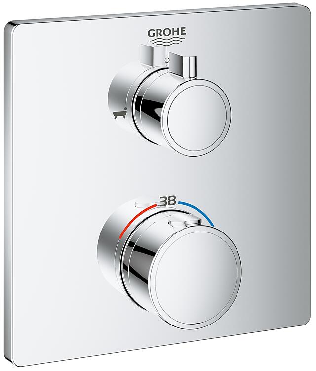 Mitigeur thermostatique de baignoire encastré Grohtherm, Rosace 158 x 158 mm, inverseur 2 voies![]()