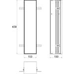 Description • Avec porte-brosse pour WC, 1 porte-rouleaux, 1 boîte pour rouleaux de réserve • Dimensions extérieures (l x H x P) : 154 x 658 x 150 mm • Dimensions intérieures (l x H x P) : 142 x 622 x 130 mm • 1 porte, pouvant être carrelée • Pas de cadre intégré nécessaire • Y compris fixation Caractéristiques techniques